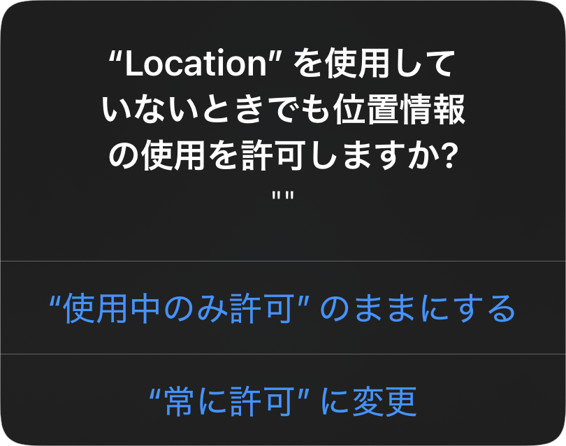 iOSがユーザーに認可を求めている様子 (パターン3)